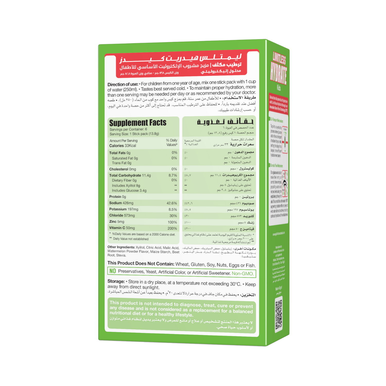 Limitless Hydrate Kids is a hydration formula made just for children, combining the WHO-approved ORS blend with essential electrolytes to support healthy hydration, energy, and immunity. Enriched with Vitamin C and Zinc, it's designed to keep up with growing bodies and busy days—from school to sports and everything in between.